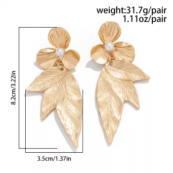 Elegant Pearl Flower Drop Earrings – Vintage Leaf Design for Women