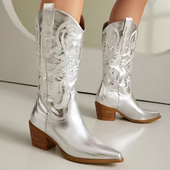 Luxury Women’s Block Heel Cowboy Ankle Boots – Pink, Green, Plus Sizes