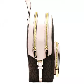 Michael Kors Jaycee Medium Zip Pocket Leather Backpack in Brown/Powder Blush