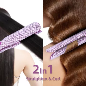Rhinestone Titanium Hair Straightener 2” Flat Iron with LCD & Fast Heat