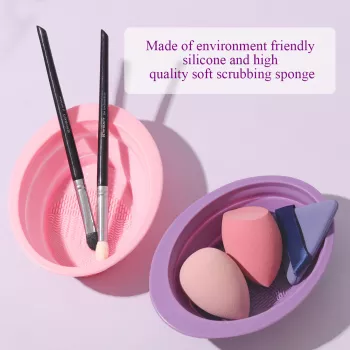 Silicone Makeup Brush Cleaner Bowl – Foldable Brush & Puff Washing Box