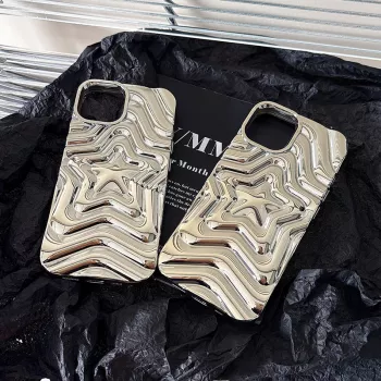 Silver Chrome Star Gradient TPU Phone Case for iPhone 16 15 14 13 Series